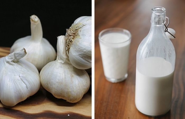 Bawang putih dicampur dengan susu yang memiliki rasa manis ternyata campuran ini khasiatnya sangat dahsyat. Begitu pula dengan bawang putih yang mengandung banyak zat antioksidan di dalamnya. Satu gelas susu 3 sendok makan air putih 6-7 siung bawang putih.